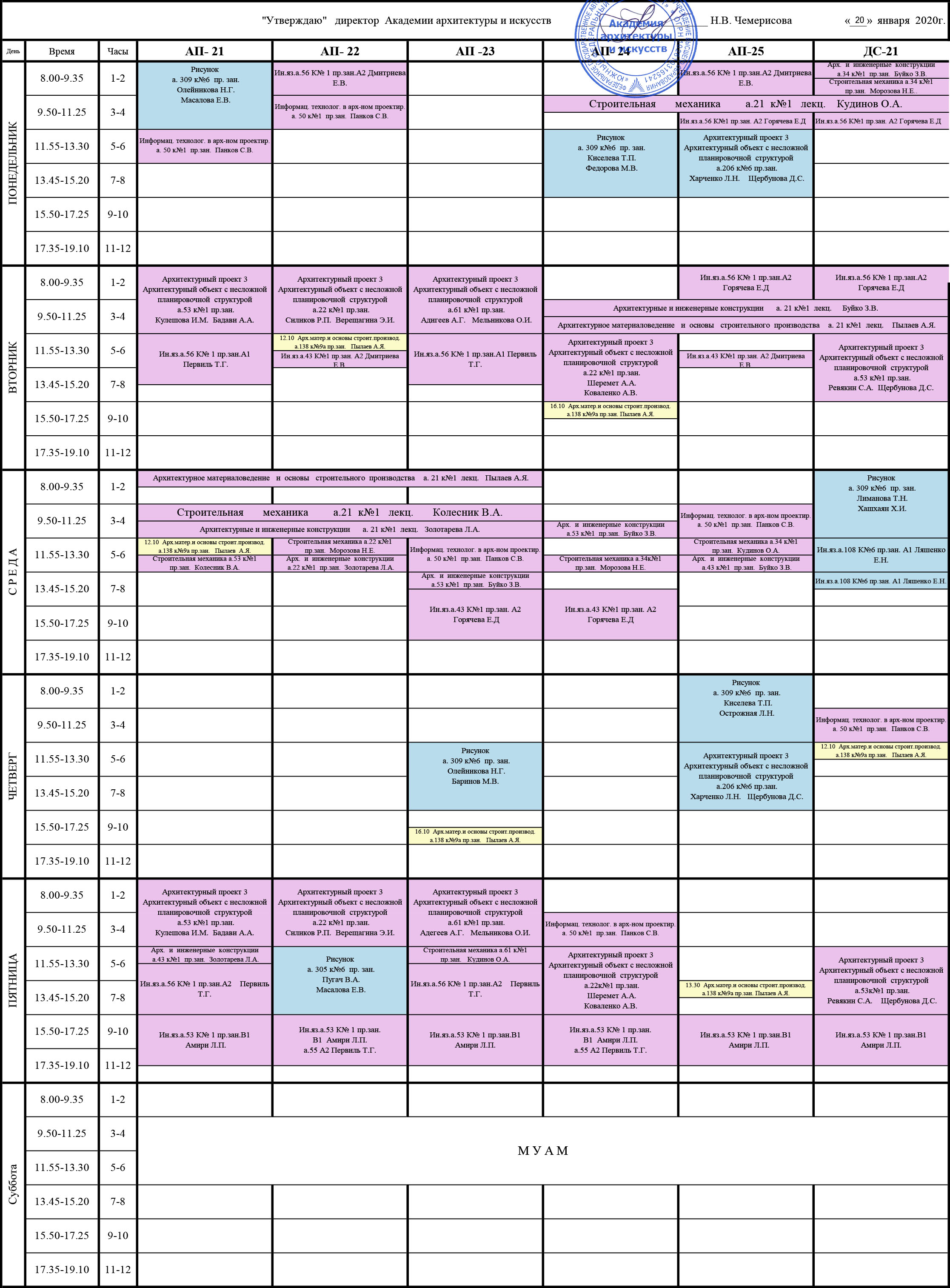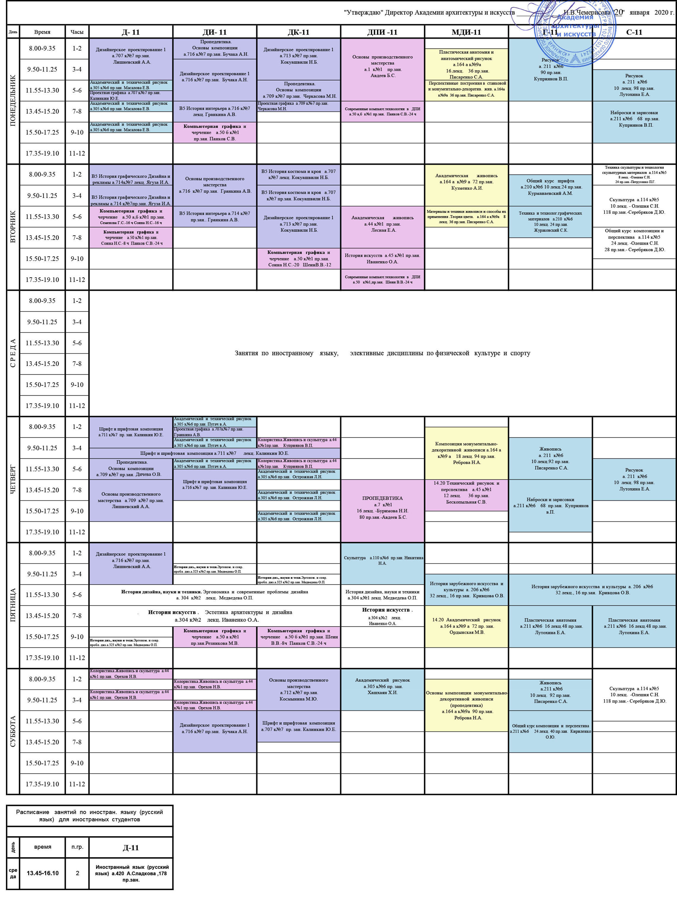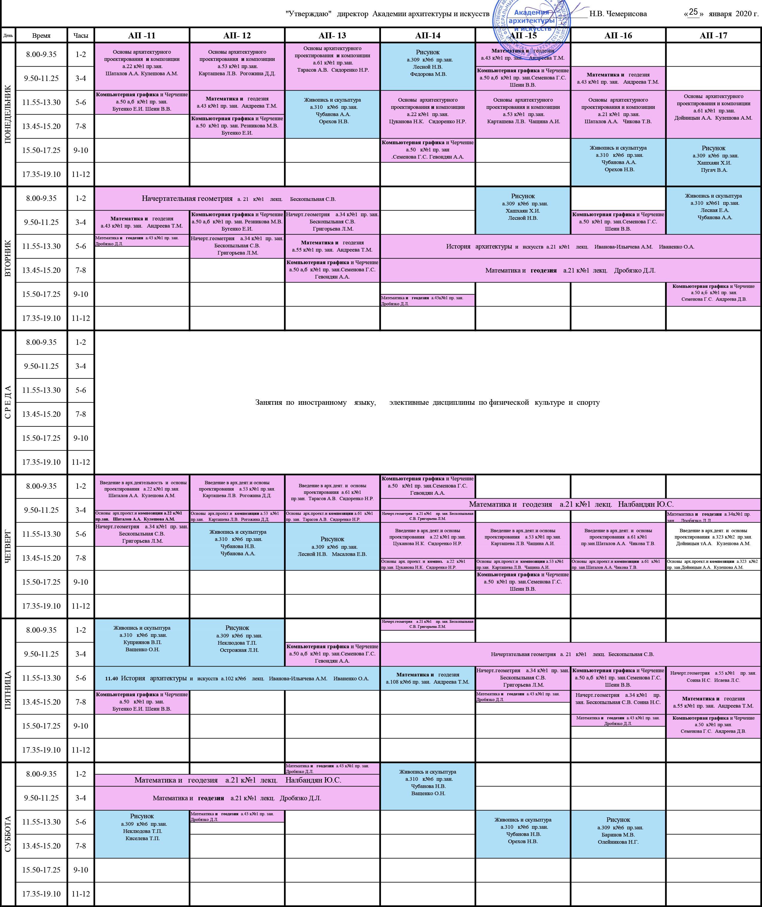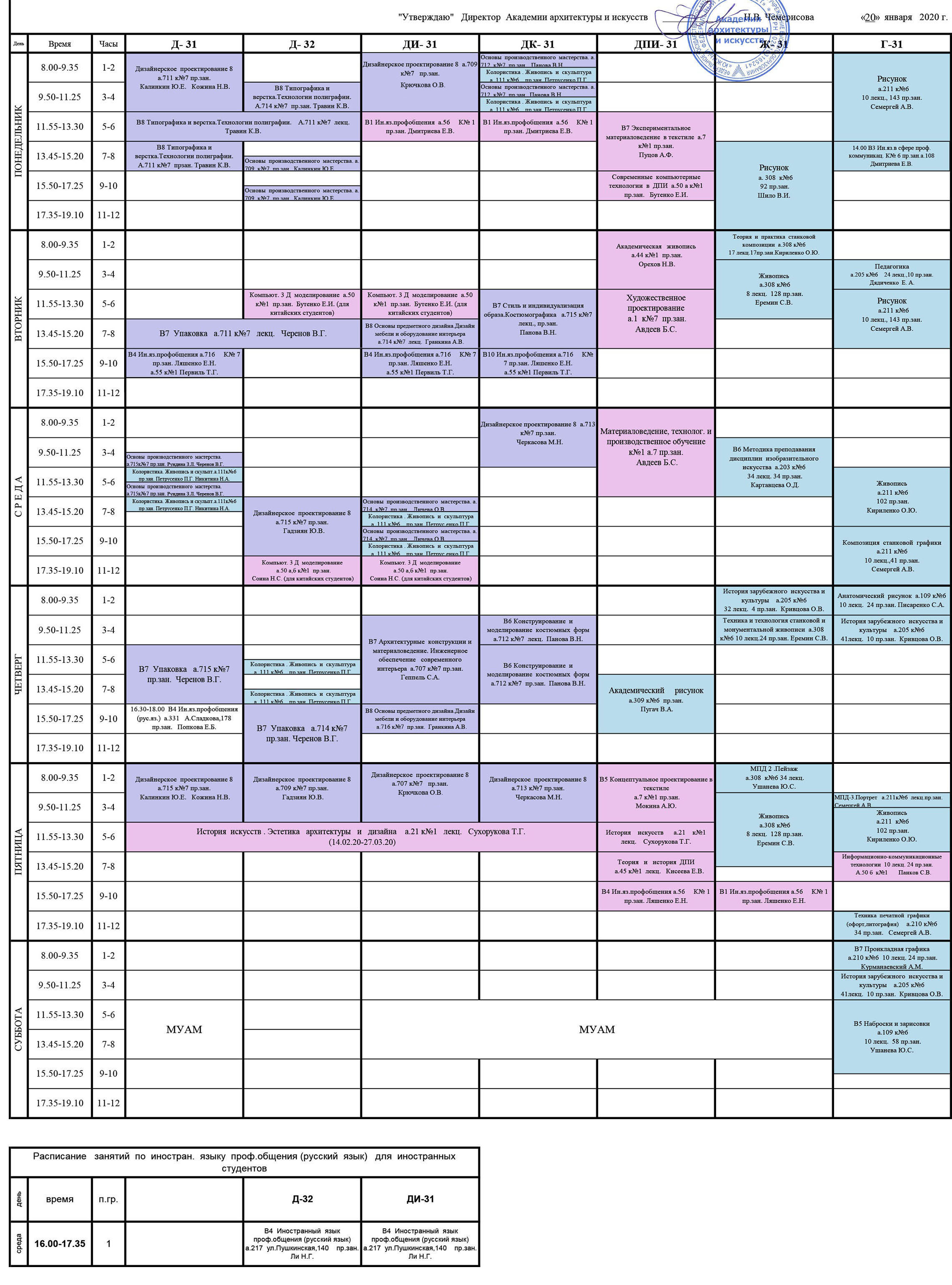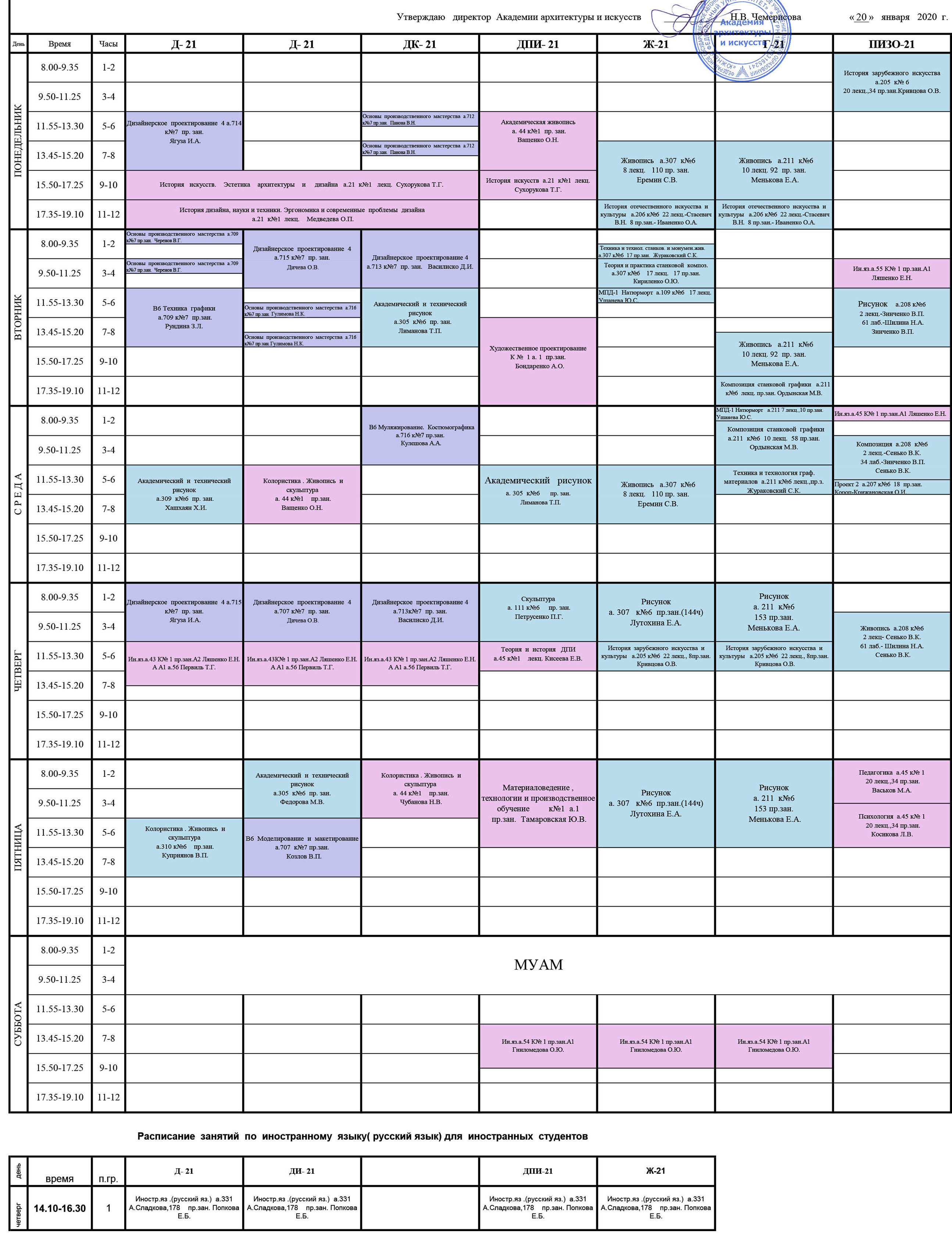 РАСПИСАНИЕ ЗАНЯТИЙ