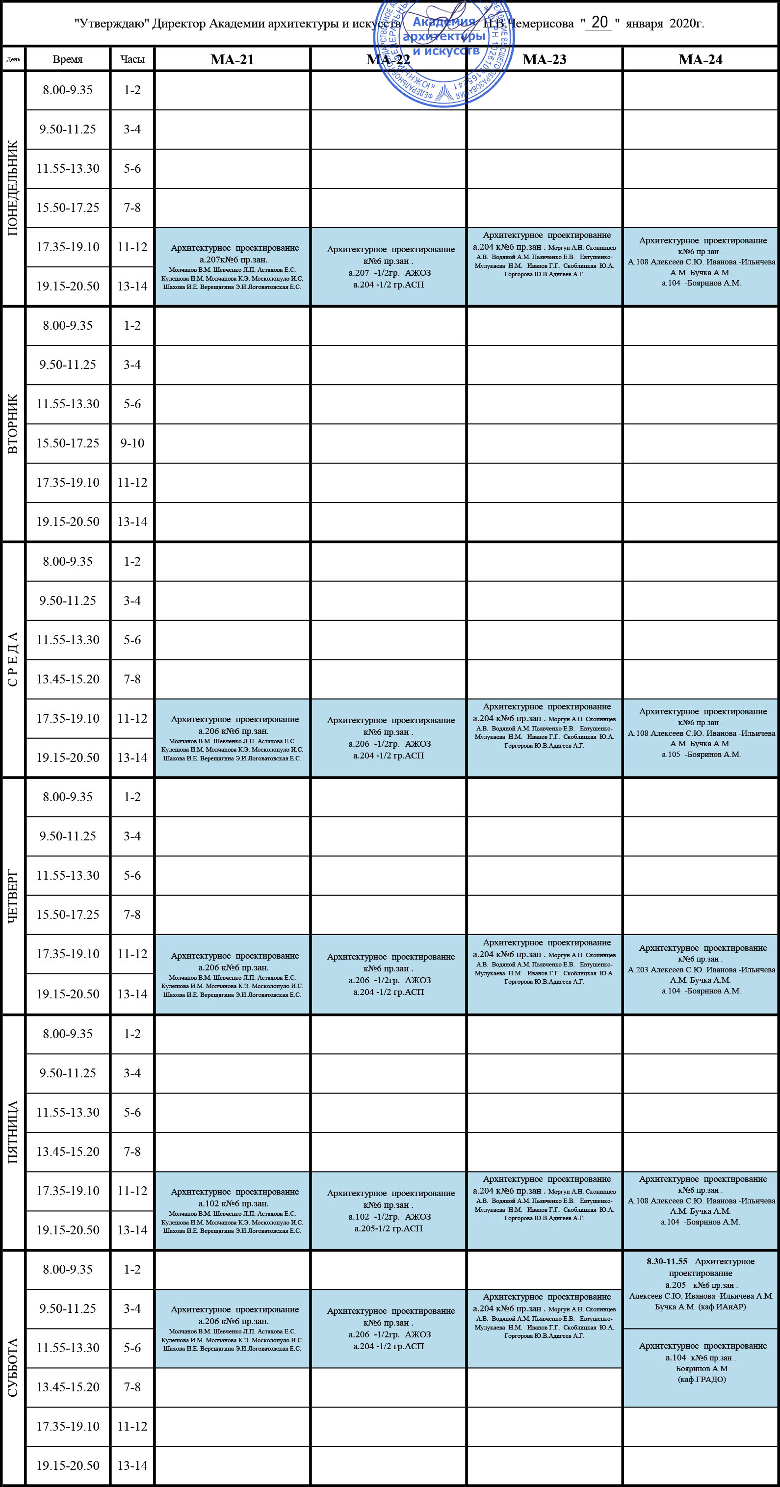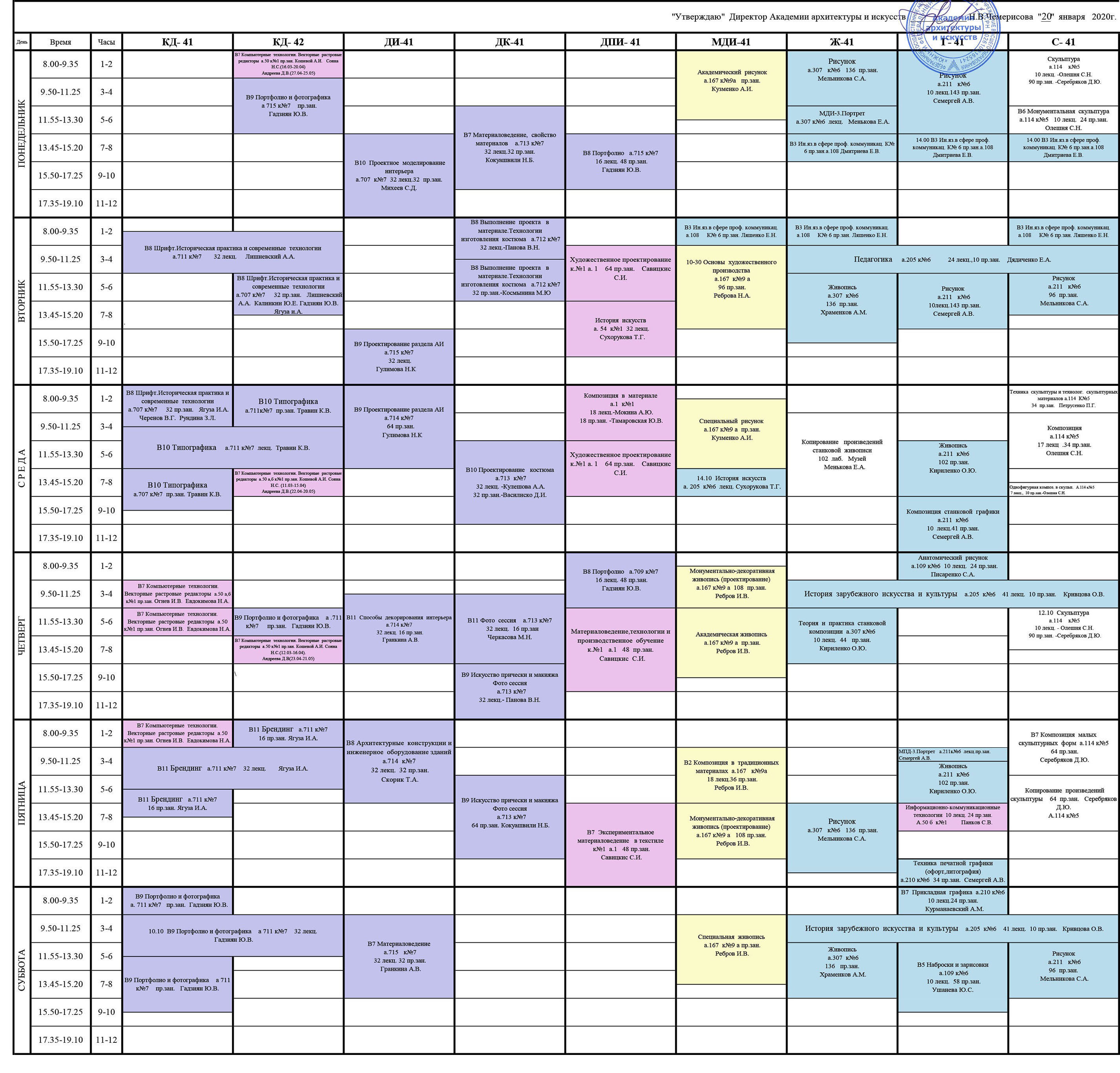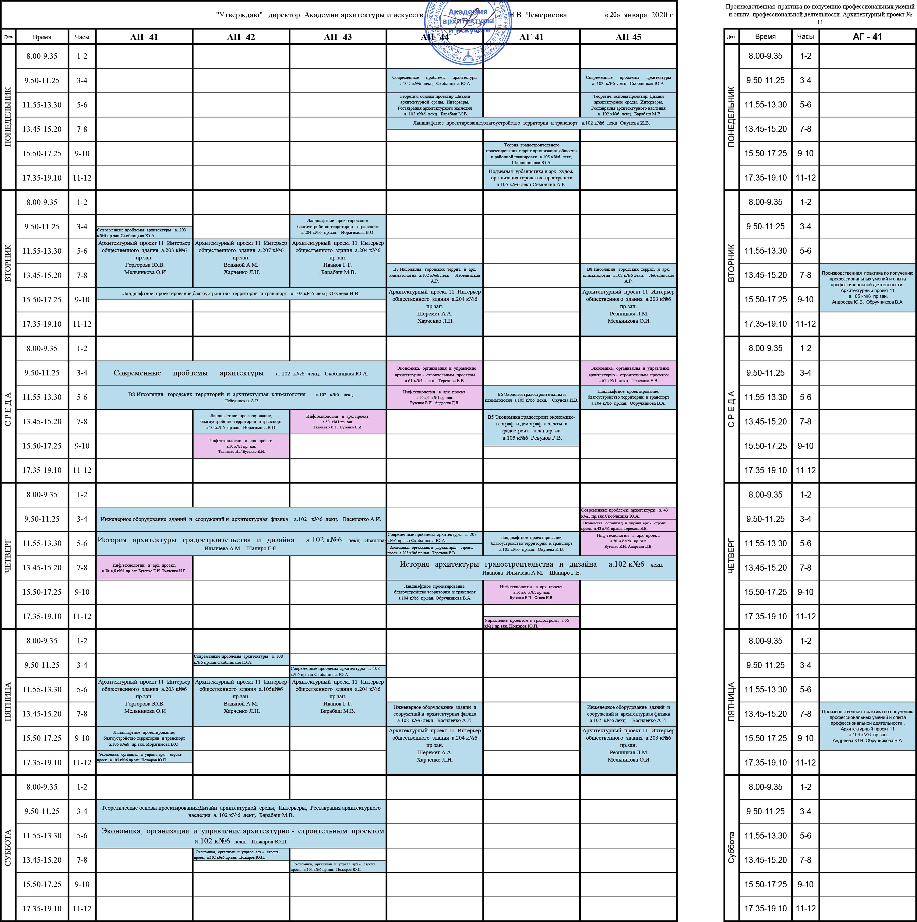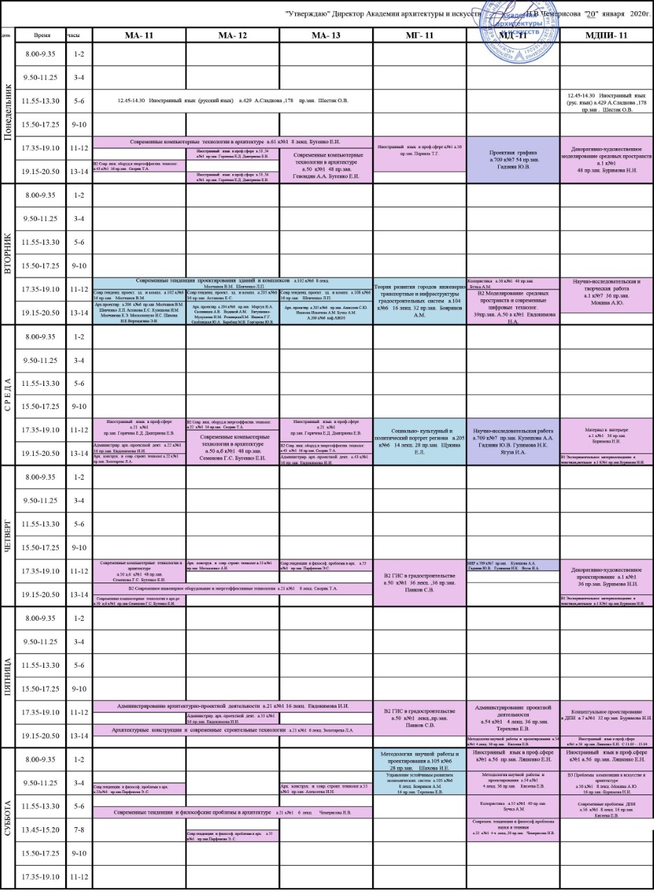 РАСПИСАНИЕ ЗАНЯТИЙ