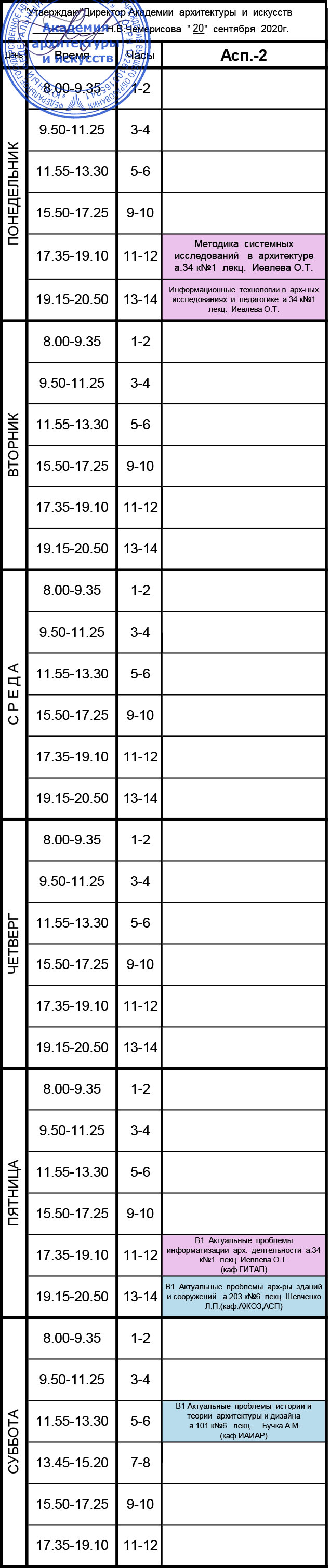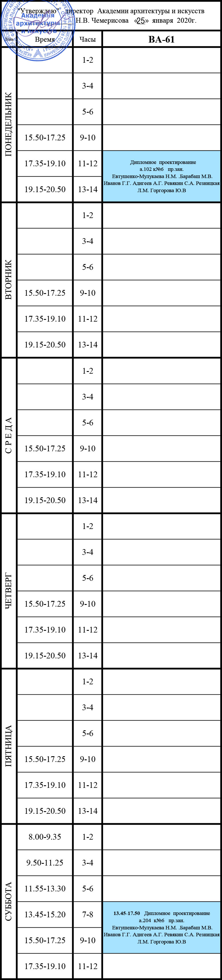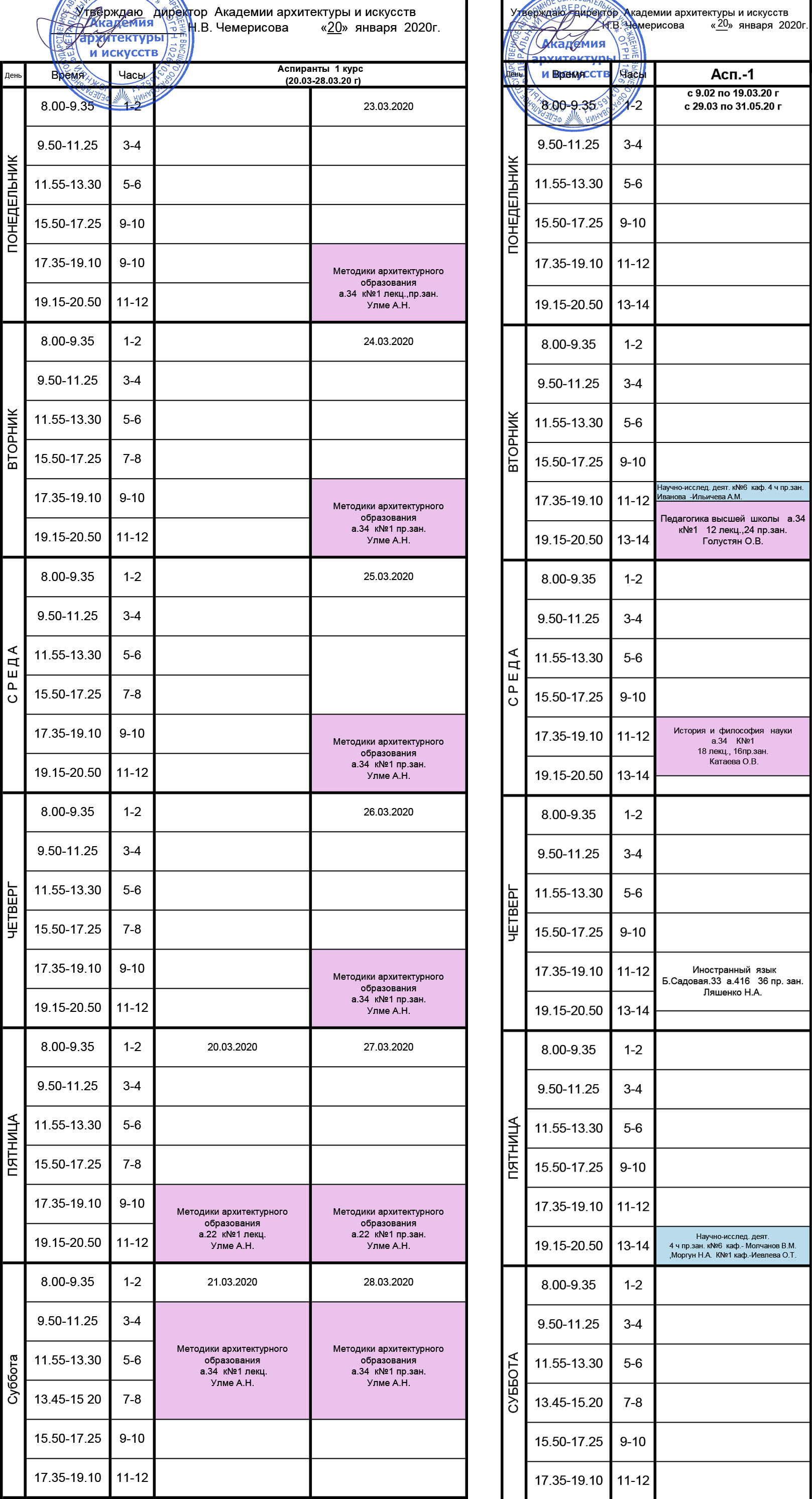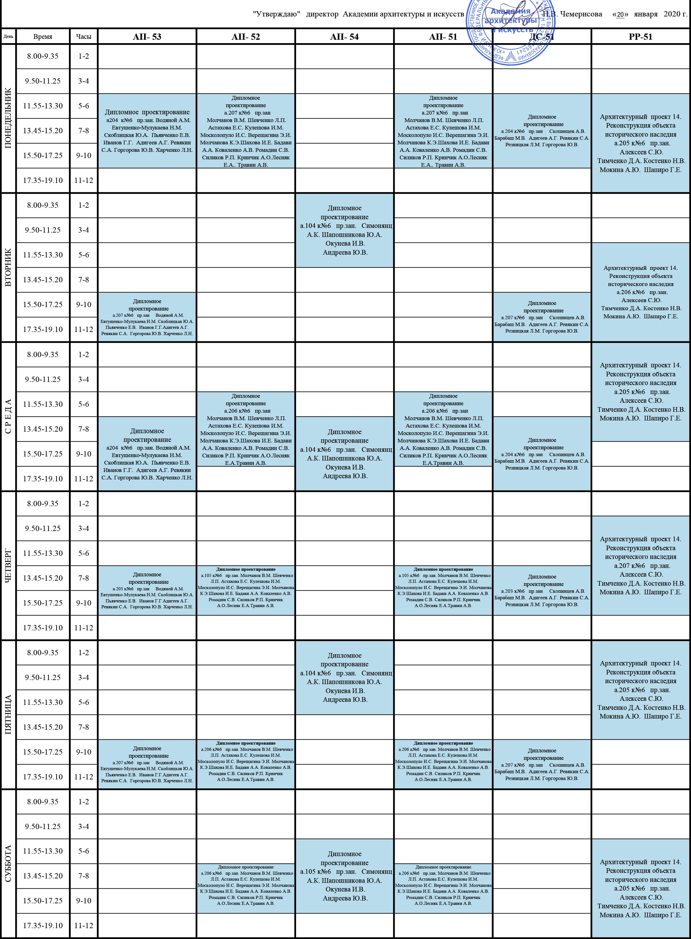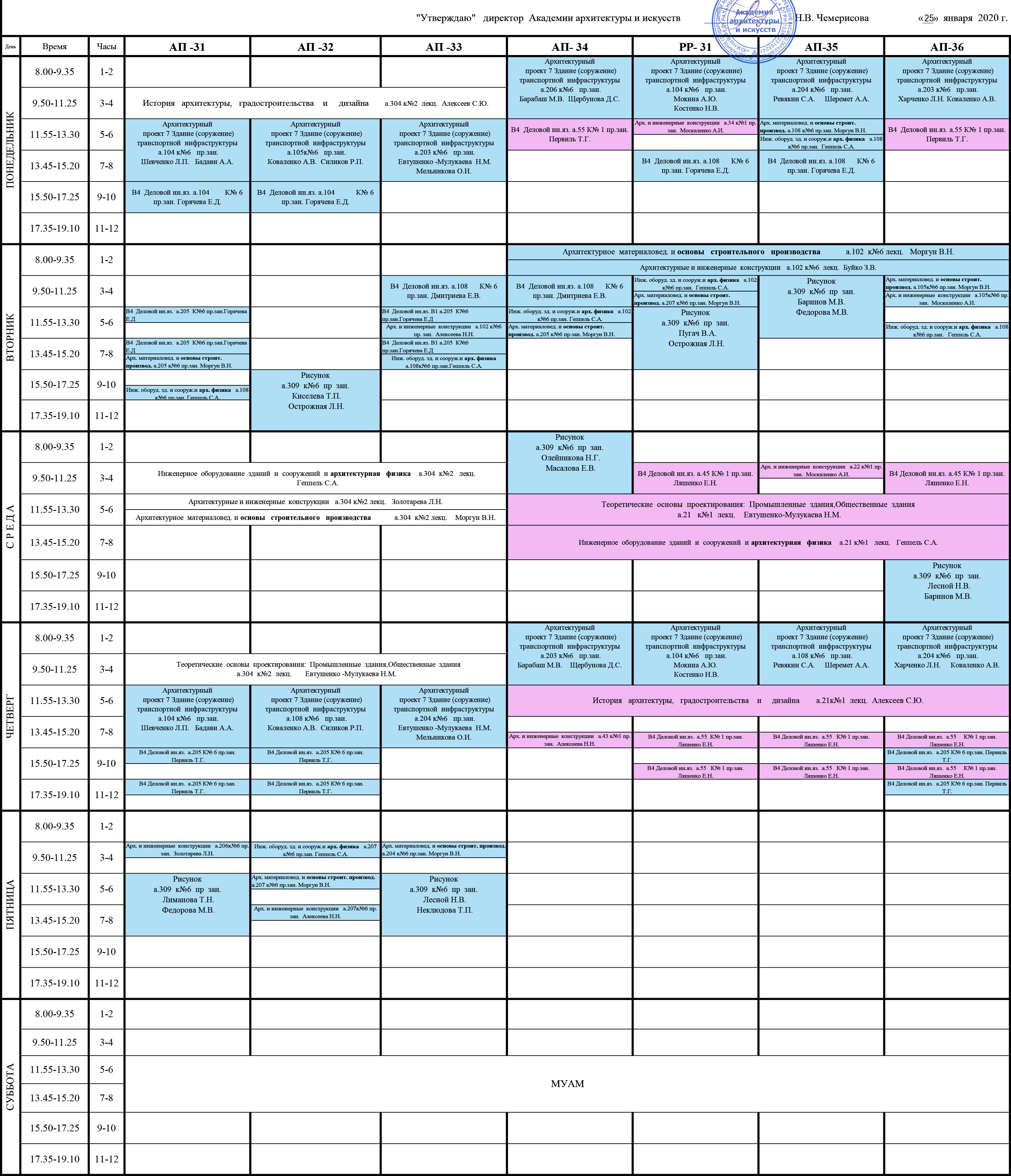 РАСПИСАНИЕ ЗАНЯТИЙ